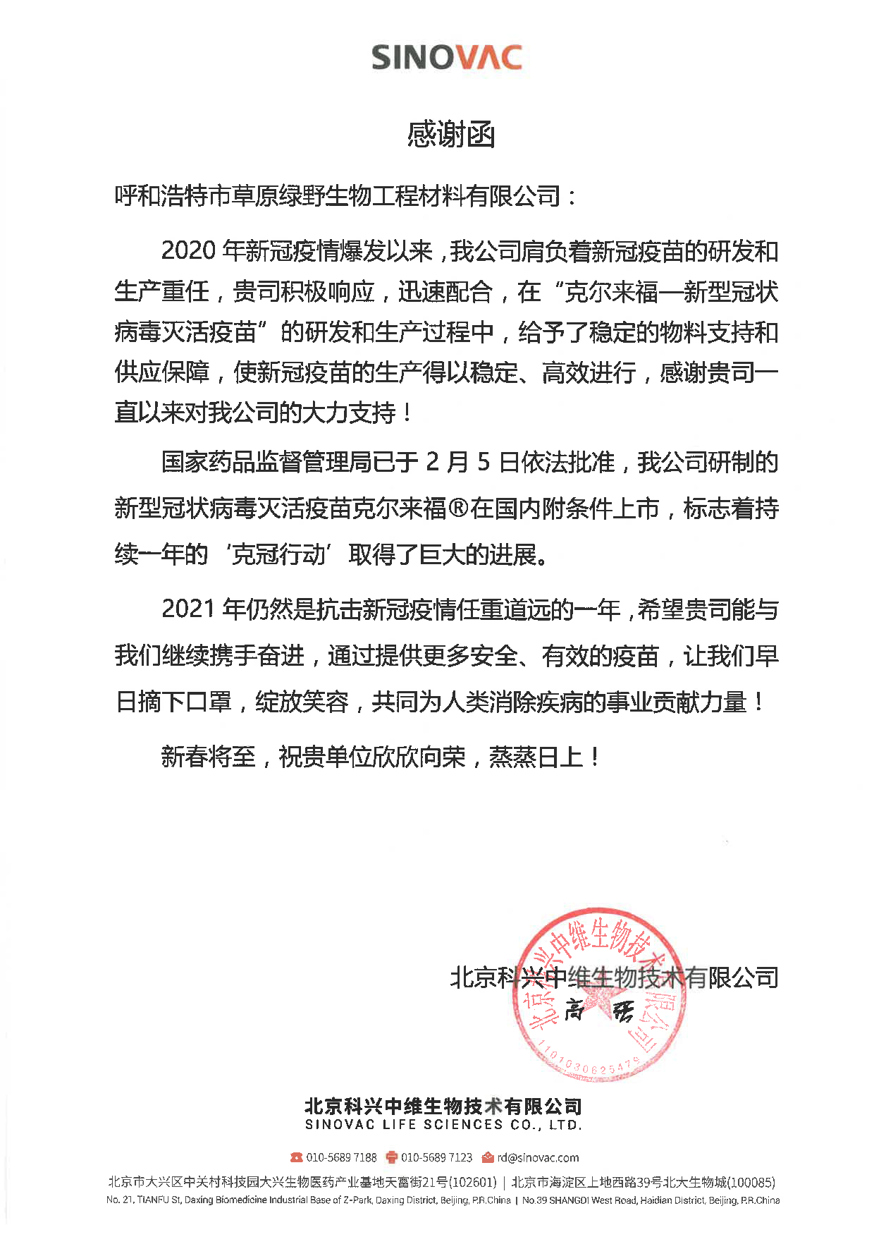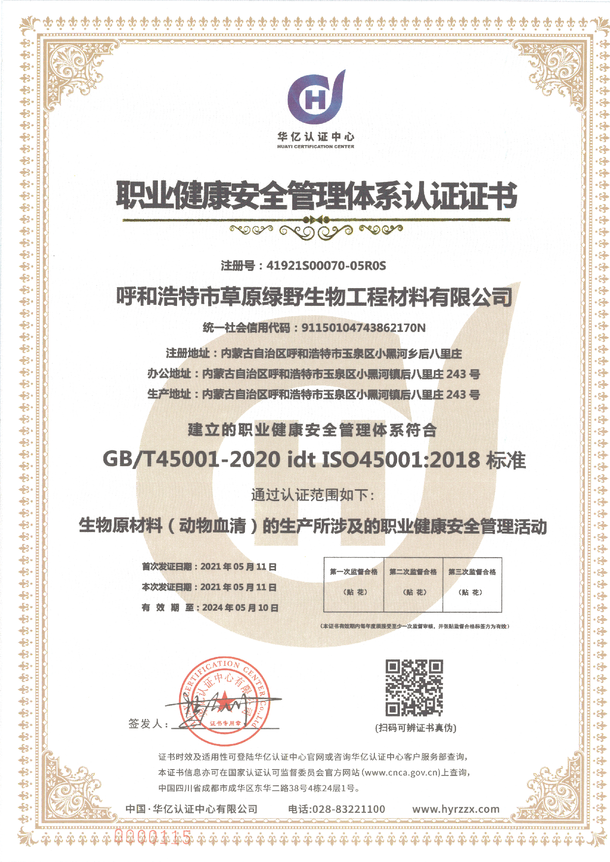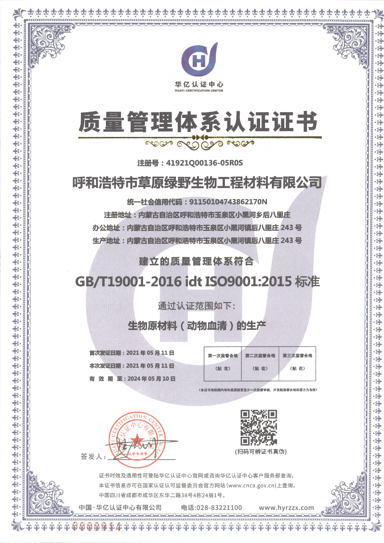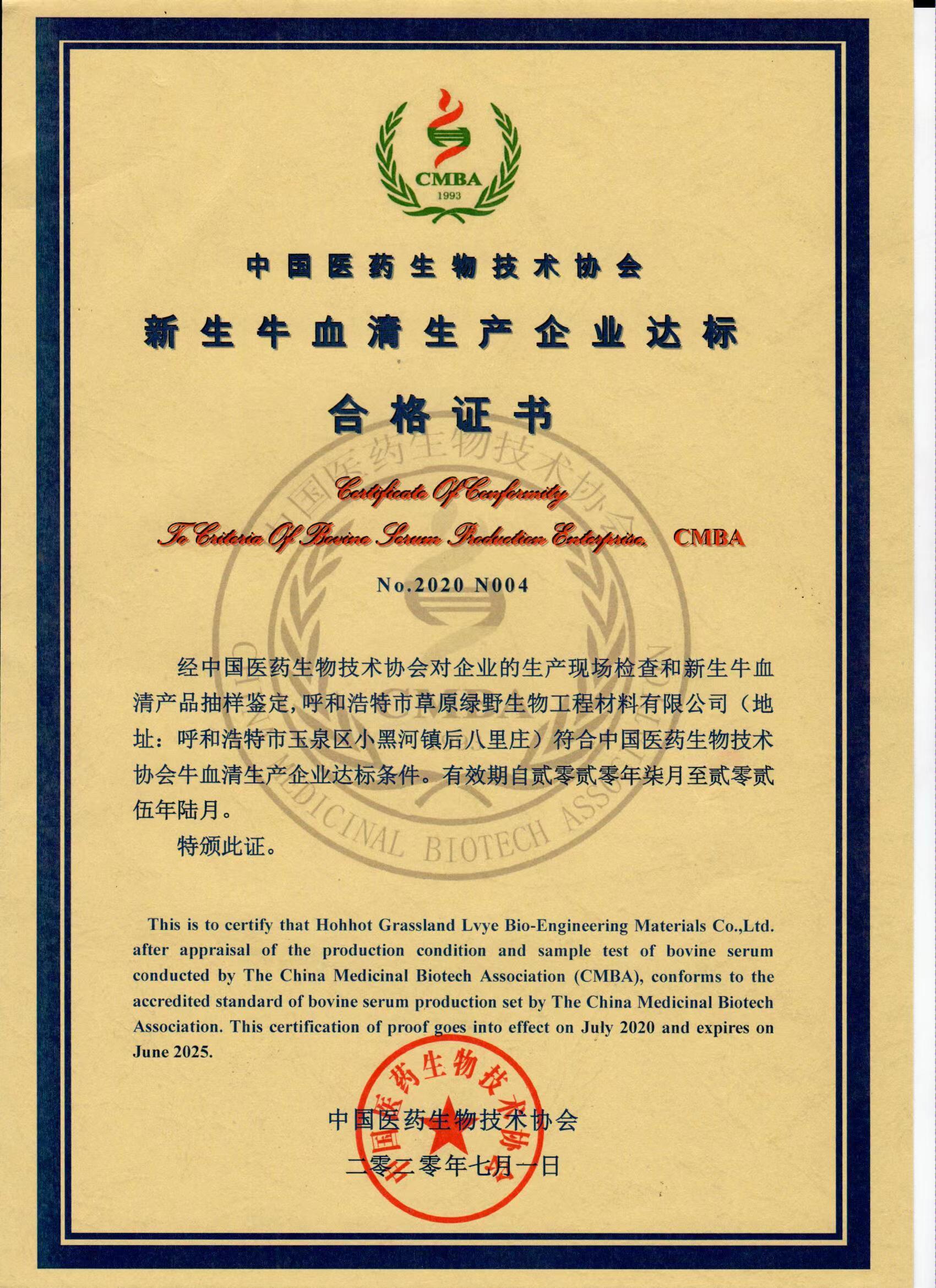 呼和浩特市草原綠野生物工程材料有限公司,坐落在中國乳都——呼和浩特,成立于1984 年5 月,是中國大型動(dòng)物血清生產(chǎn)廠家之一。1995 年建造了國內(nèi)首個(gè)生產(chǎn)血清的凈化車間,1996 年生產(chǎn)出了國內(nèi)首批細(xì)菌內(nèi)毒素小于10EU / ml 的新生牛血清,井收錄于《中國藥典》。于2001 年研發(fā)并生產(chǎn)出BVDV 、BDV 四陰性豬瘟專供新生牛血清。于2008 年6 月、2013 年09 月、2019 年12 月三次順利通過中國醫(yī)藥生物技術(shù)協(xié)會(huì)《牛血清生產(chǎn)達(dá)標(biāo)企業(yè)》認(rèn)證。